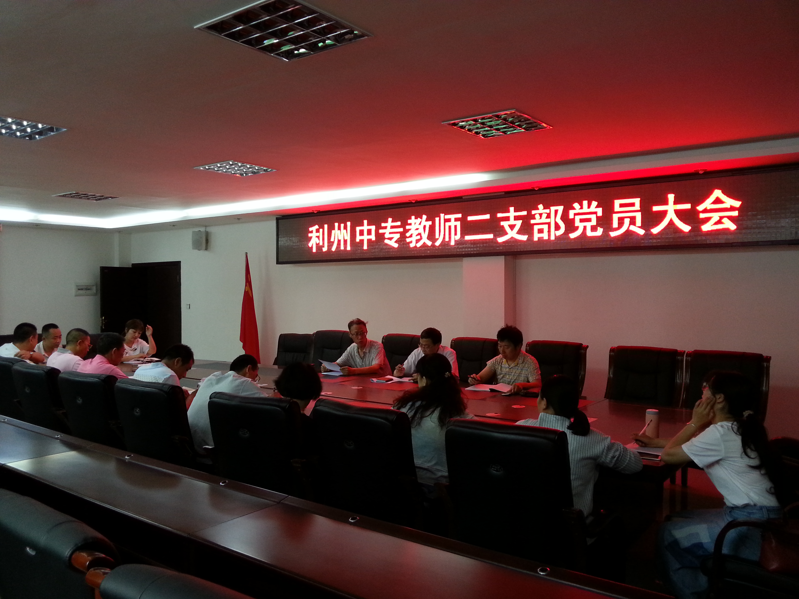 6月6日,利州中专教师二支部在学校行政楼四楼会议室召开了支部党员大会。会议由支部书记李永同志主持,学习了广利中专党委[2016]11号、广利中专党委(2016)12号文件,根据教师二支部“两学一做”工作情况,对近期“两学一做”工作进行了安排部署。学校党委杜建新书记对教师二支部在党建及“两学一做”工作中的成绩和不足进行了总结,要求支部严格按照上级要求开展好学习教育,做到有计划、有清单、有学习资料、有活动载体、有宣传报道。每位党员要落实学习计划、专用笔记本、抄一本党章党规、温一次誓词志愿、说一句心里话、提一张问题清单、做一次义工服务、献一条发展良策。最后,根据广利中专党委〔2016〕9号文件精神,支部开展了民主测评,推选出6名优秀共产党员和1名优秀党务工作者。