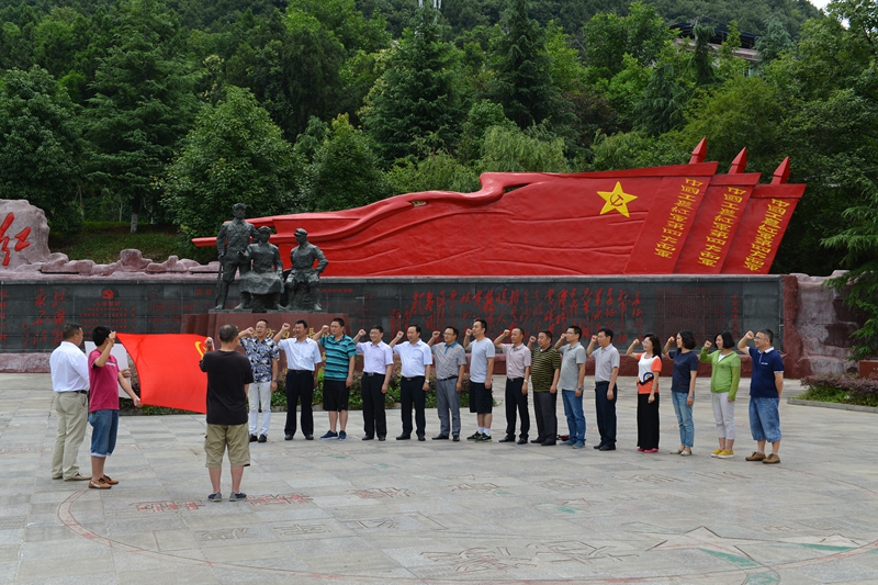 在红四方面军长征出发地、强度嘉陵江战役纪念地苍溪红军渡景区,在威严刚毅的红军渡铜像面前,大家举起拳头,再次高声朗诵入党誓词,高昂的声音传递着一名共产党员的铮铮誓言,表达了对革命先烈的无限缅怀。在“红四方面军长征出发地”纪念馆,红军势如破竹的气势鼓舞着每位党员的意志,珍惜幸福生活、发扬红军精神、传承红军精神成为了每位党员的心声。