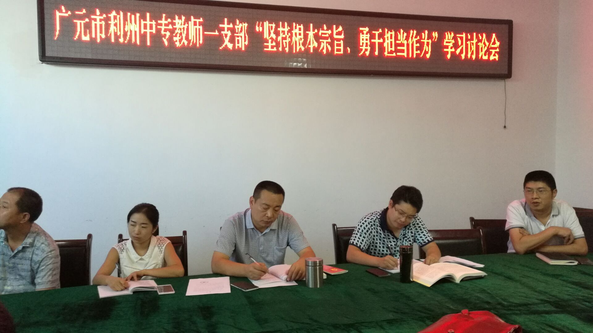 2016年9月1日下午,学校教师一支部根据《中共广元市委组织部关于从严落实“共产党员活动日”的通知》文件精神和学校党委具体安排,在修德楼东3-4会议室召开“两学一做”专题讨论会。此次讨论会以“坚持根本宗旨,勇于担当作为”为主题,会议由支部组织委员蒲彩红同志主持,与会党员教师结合主题交流分享“两学一做”学习教育过程的感受与收获。