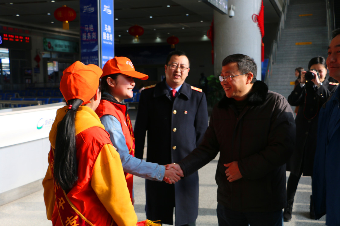 2月11日农历正月十五,学校党委书记杜建新、副校长贾相成一行来到广元火车站,看望慰问我校正在开展志愿服务的青年志愿者。