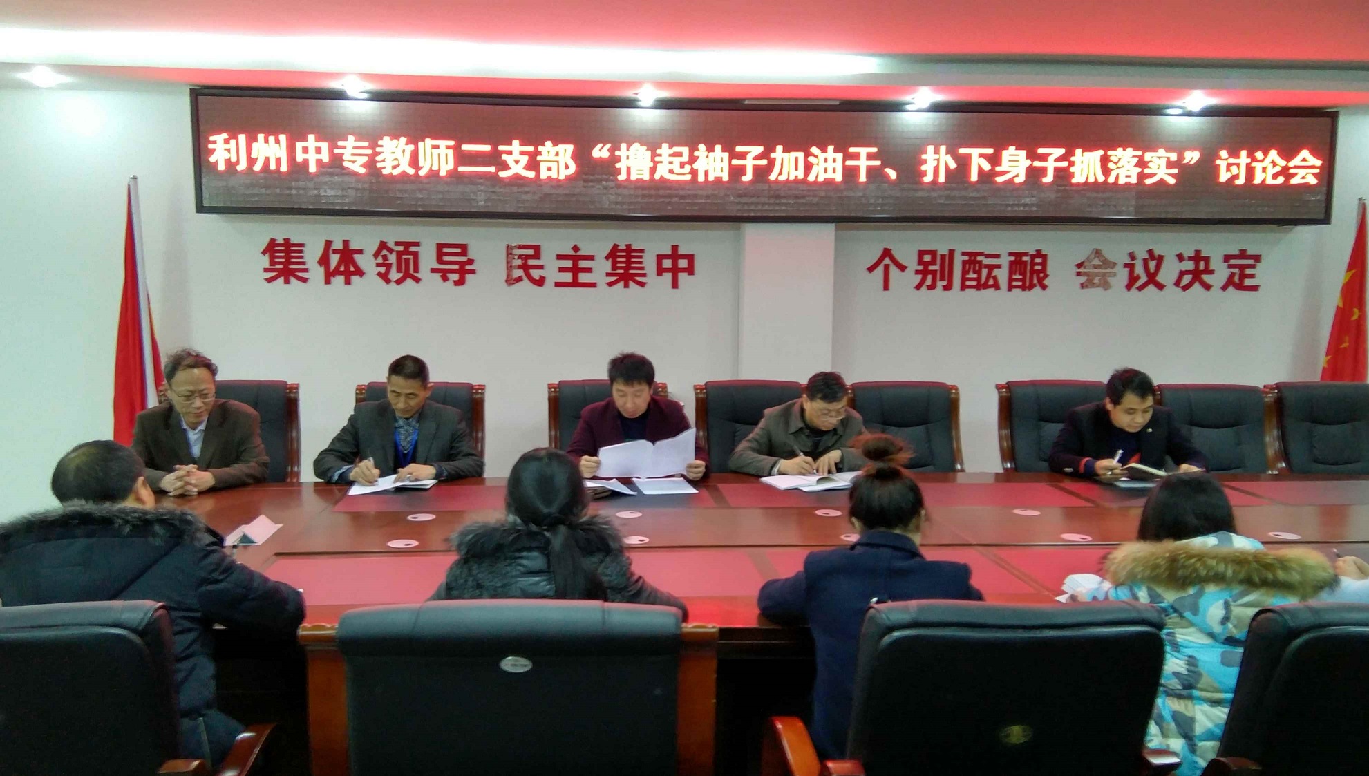2017年3月10日,教师二支部在行政楼四楼会议室组织召开“撸起袖子加油干、扑下身子抓落实”主题党日学习讨论会。