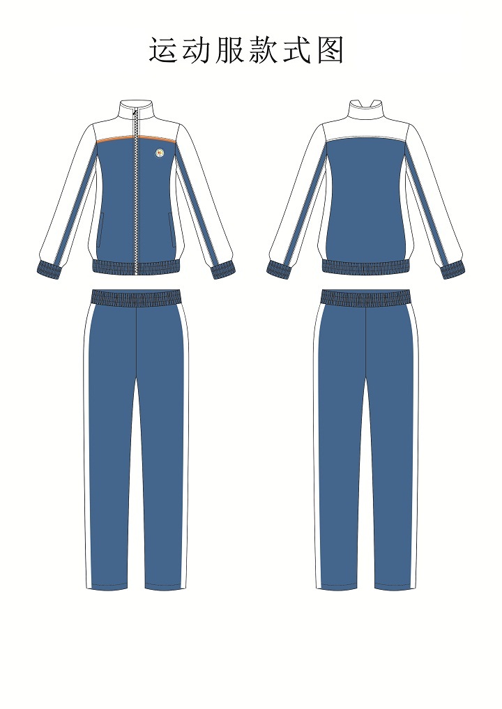 | 2 | 秋季校服(运动套装:由浅蓝、白色、灰色三色构成) | (1)面料:100%聚酯纤维 (2)制作要求:款式时尚,剪裁独特;面料环保健康,不掉色,抗皱性强,色牢度达3.5级以上;品牌拉链,反复拖拉10万次以上,自带刹车功能;洗水唛齐全,标识符合要求 。 | 套 | 1 |