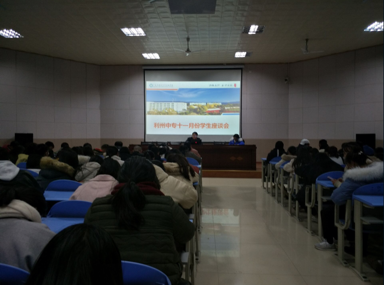 2018年12月23日,学校在教学楼二楼会议室召开本学期最后一次学生座谈会,学校41个教学班共计205名学生代表参加会议,教务科副主任赵星圻主持会议。