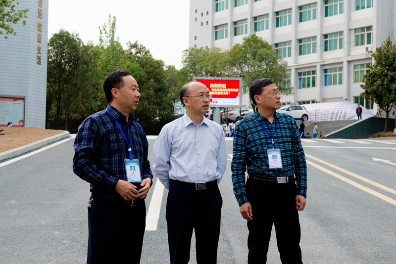蔡存明同志一行参观了教学楼、实训楼、建筑工法展示区,了解了校园前庭、工学结合两个在建项目的建设情况,仔细询问了校园文化建设、师生参加各级技能大赛、高职单招等工作情况。