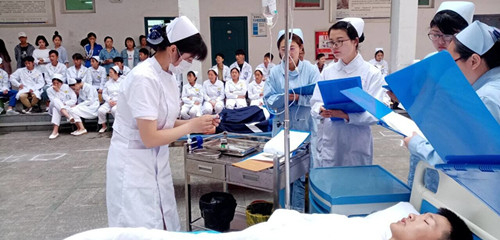 为彰显新时期“产教融合、校企合作,立德树人,知行合一”的职教理念,弘扬第108个国际护士节“发展护理服务,人人享有健康”的主题,5月12日我校第三届护理技能比赛,以竞赛的形式,致敬国际护士节,也以此为契机,检验护理学生的专业知识和专业素养。来自护理专业11个班级的优秀选手角逐本次比赛冠亚军,弘扬南丁格尔精神、展职教风采。