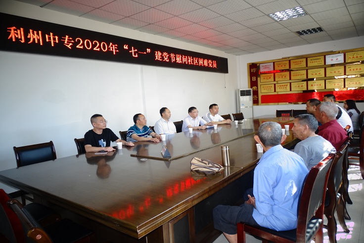 6月29日。微风不燥。利州中专领导班子一行5人,走进上西女皇路社区,开展“七一”前进社区双报到活动。领导班子察看了女皇路社区居民文体活动室的文化建设情况,和社区负责人探讨了校社共建共享具体措施,随后看望了社区5名困难党员并送上了慰问金。校长李锦、党委书记杜建新在随后的座谈会上表示,校社共建共享,是学校发展的重要内容,校社一家是推动地方经济繁荣、文化发展的有力保障,利州中专将在今后的工作中,坚守人民为中心的初心,切实担起校地共同发展、共同进步的使命,为校地文化共荣增光添彩。