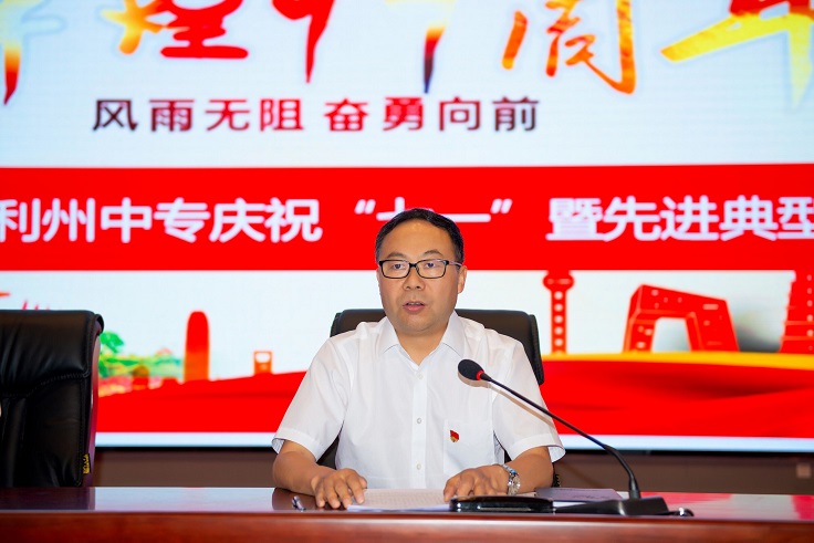 7月1日,细雨如星。下午,我校在演播厅隆重举行庆祝中国共产党成立99周年暨“七一”表扬大会。学校党委书记杜建新,党委副书记、校长李锦,党委委员贾相成、苏克难出席大会。全校教职工参加会议。大会由党委书记杜建新主持。