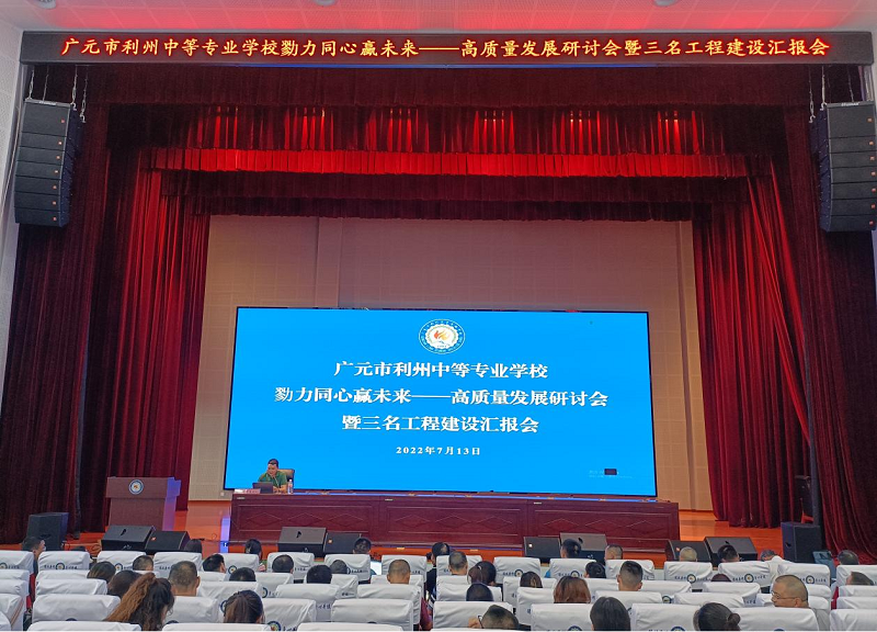 7月13日下午,利州中专协力同心赢未来――高质量发展研讨会暨三名工程建设汇报会在学校多功能演播厅召开。