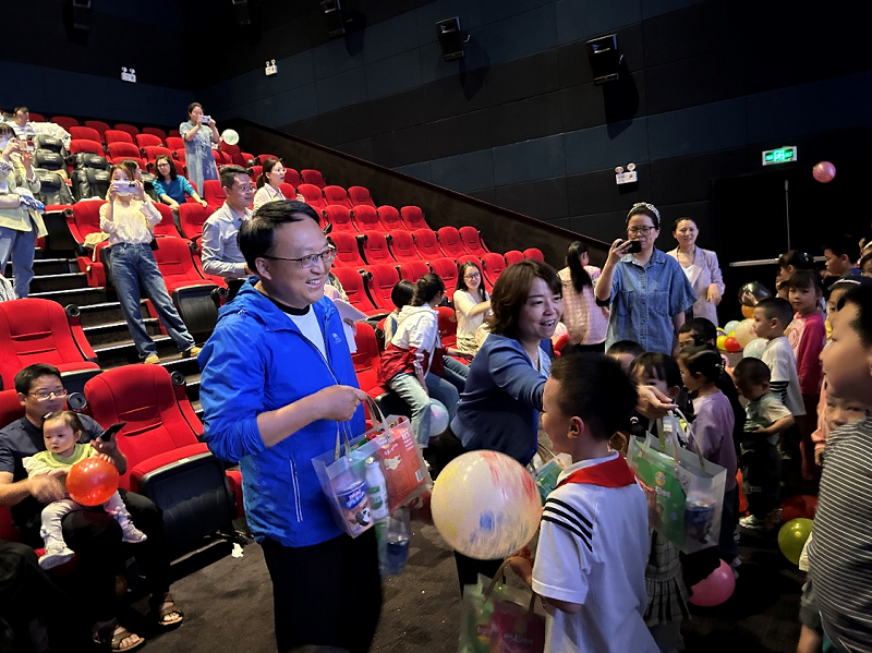 观影活动开始前,党委书记赵刚、工会主席郑敏与小朋友们亲切交流,祝福小朋友们节日快乐,鼓励他们努力学习,健康成长,全面发展,并向孩子们赠送了小礼包,小朋友们接过礼包爱不释手,开心地合影留念。