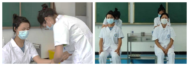 推拿,是中医康复治疗中极具中医特色又富有疗效的一种治疗手段。本次技能大赛除了考察学生技能操作的规范性、熟练性以外,还考察学生人文关怀,人际沟通等能力。“推、拿、按、揉……”,同学们穴位准确,力度适宜,动作流畅,仿佛置身于康复治疗室。在这里,没有稚嫩的学生,只有专业的治疗人员。