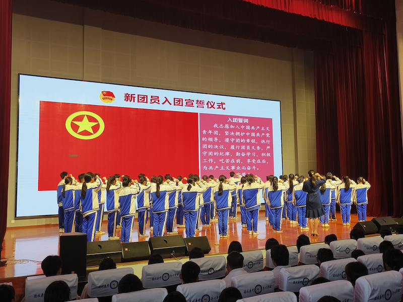 活动在庄严的国歌声中拉开序幕。入团仪式上,学校领导班子为新团员颁发团员证、佩戴团徽,全体新团员面向团旗,庄严宣誓。