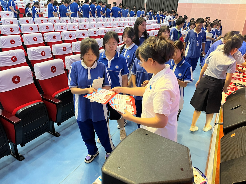 讲座结束后,市三医院精卫中心工作人员现场分发了毒品预防健康教育宣传资料,全体师生进行了拒毒宣誓并在禁毒宣传条幅上签字承诺。