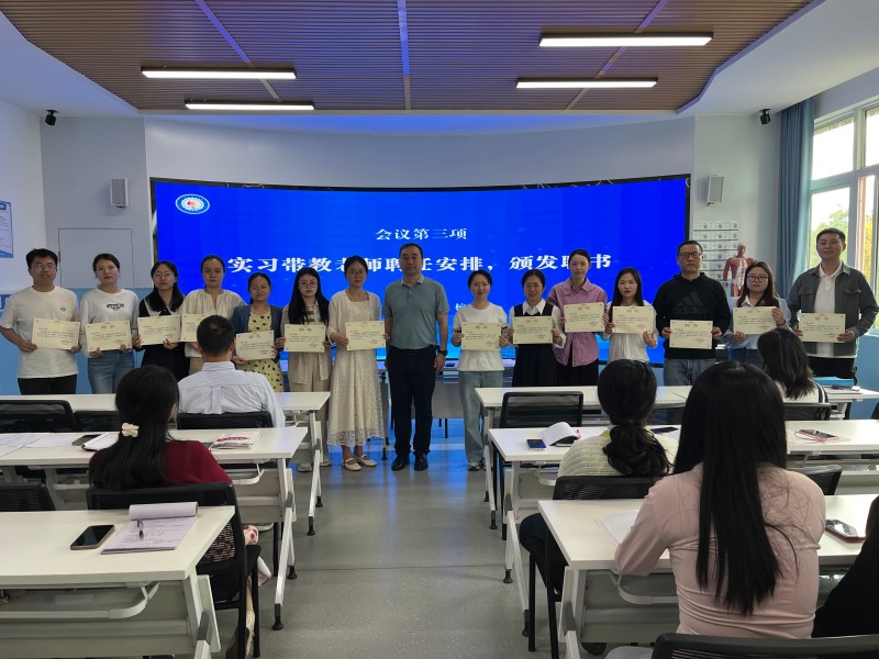 会议现场对2023级的实习带教老师进行聘任安排并颁发聘书,旨在激发教师实习带教的积极性,进一步强化学校实习带教师资力量,保障岗位实习实践教学质量。
